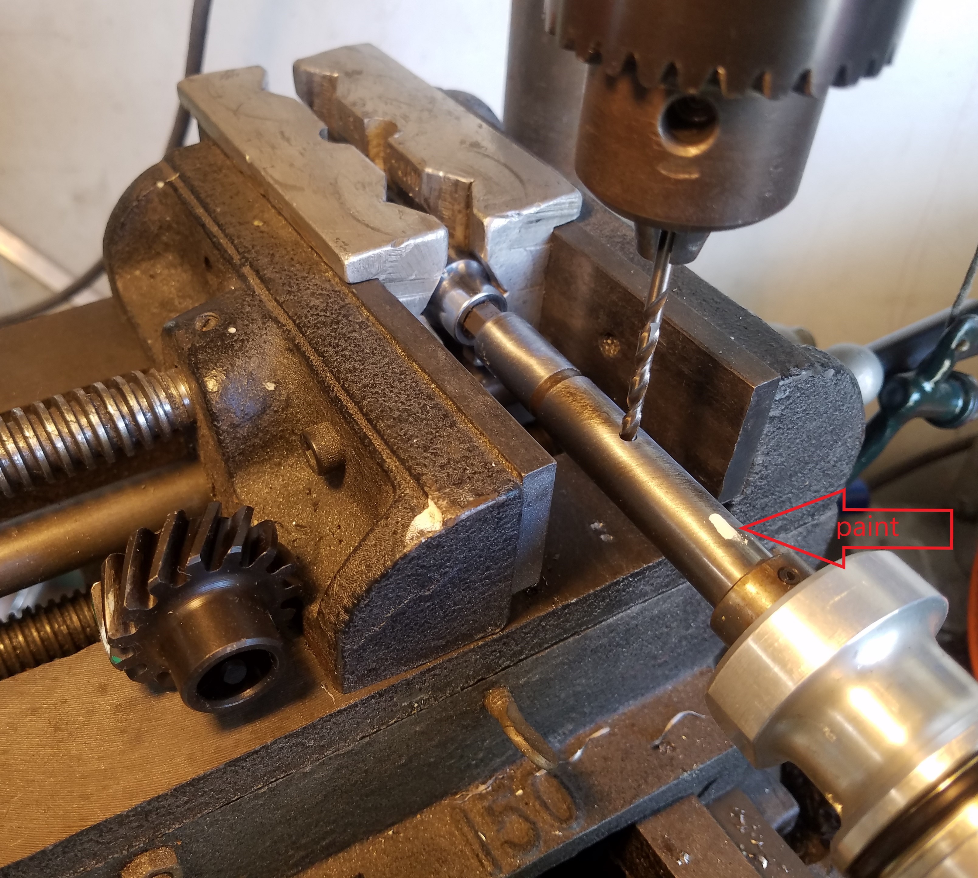 with the appropriate drill bit. Once set up, put a paint indicator on the shaft,