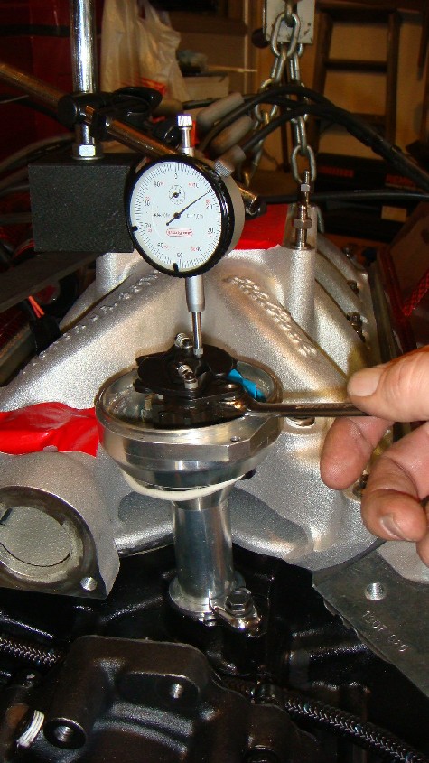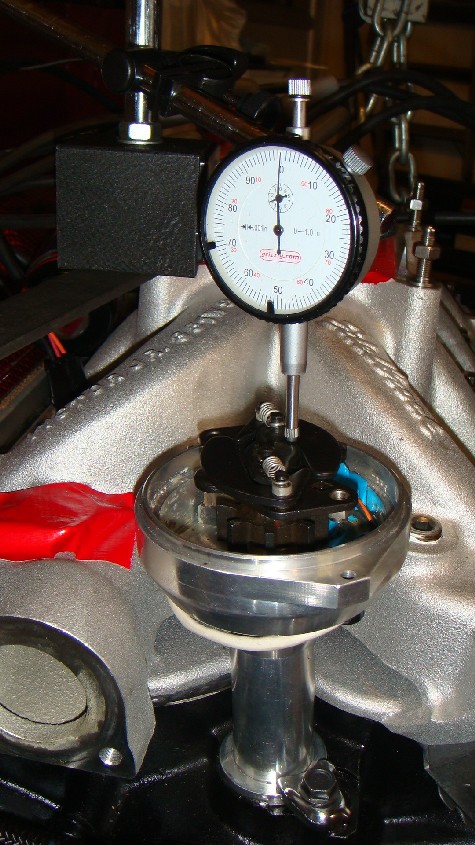 the block, tighten it down and set a dial indicator to indicate the distributor