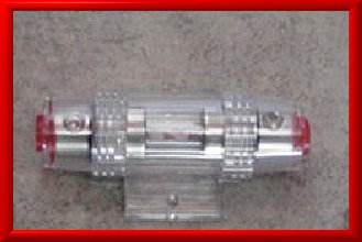 Early mark III's, the first with the drop down fuse tray, used an open, lead fuse, that spanned across two studs and was secured with nuts and washers. On my car this fuse failed because it became loose. The open design is crude and is very difficult to replace. An 80 Amp. AGU fuse and holder as shown is available at most performance sound system stores. With this design, the fuse is protected and can be replaced without tools.