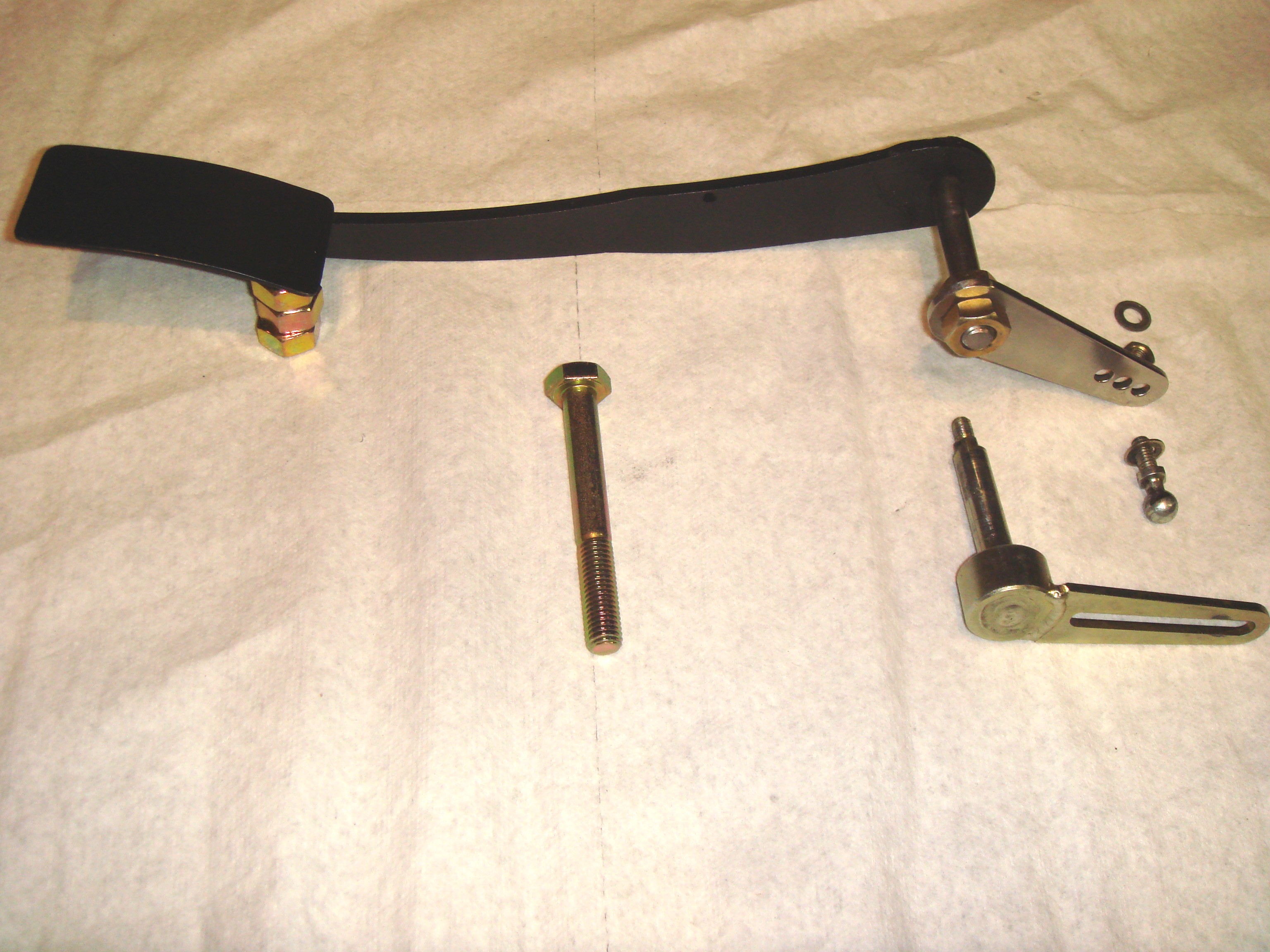 Connect the throttle lever ball stud into the center lever hole. The top and bottom hole are provided for additional adjust ability, but should not be required.