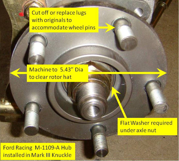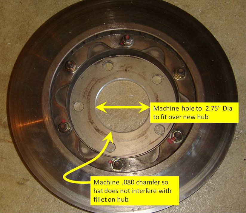2. The M-1109-A hub is a little larger in diameter that the original and will not fit inside the rotor hat. This may not be true for all vintage of cars, but is for the series addressed in this article. For this installation, the hub O.D. must be machined down to 5.43" Dia. from 5.50" Diameter