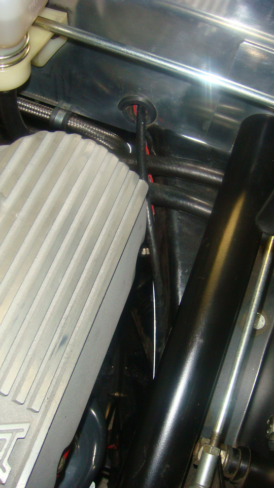 Speedometer cable exits fire wall and then routes behind the heat shield