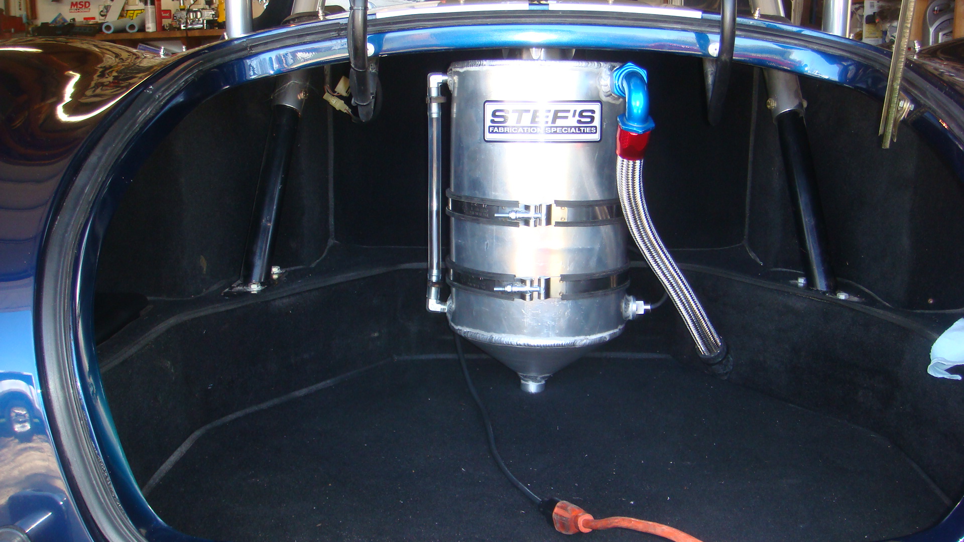 First fit of the 3 gallon oil tank into trunk